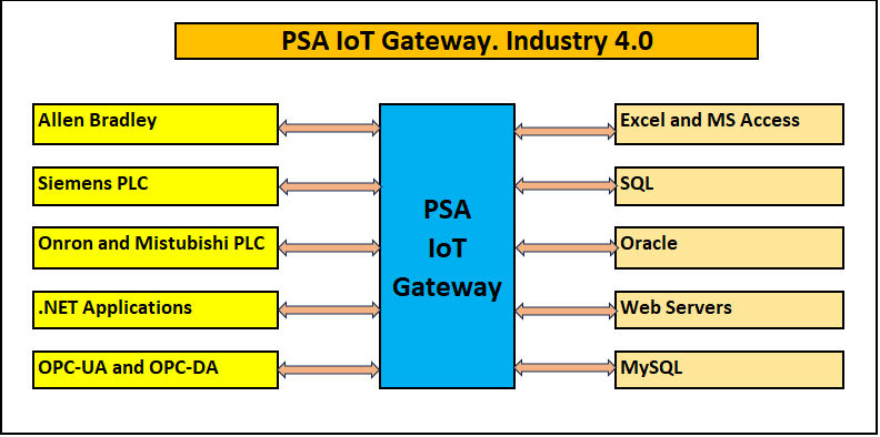 PSA IoT Gateway provides seamless data collection between many devices and databases. It allows users to create Alarm notification, alerting, recipe management, build your own application, data logging to industrial databases, excel files and could applications. PSA IoT Gateway is truly built Industry 4.0—the Industrial Internet of Things (IIoT).